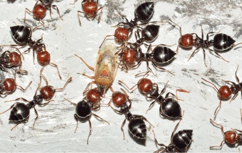 Antenna and Body Segments: Examine the ants closely to see if they have elbowed antennae and a distinctive body with three segments: head, thorax, and abdomen. This three-part body structure is a hallmark of ants.